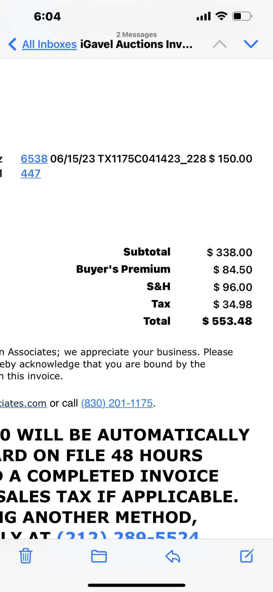 Doing business with iGavel or Lark Mason has been a less than favorable experience. Their buyers terms and conditions are lengthy with penalties and such. Perhaps I should deduct a premium for my time wasted?