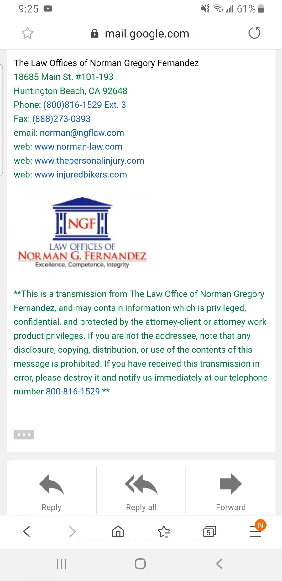 In my opinion I made a horrific error of retaining him due the assumption other reviews I read were from actual clients winning large large personal injury awards at trial, which I since learned were reviews he paid for from a company in India. I never met with Norman G. Fernandez in person and hired him online as he said he was out of the office in trial where he garnered $170,000 for a client. I fell for his online marketing campaign but later when I tried to meet with him in person, and stop by his office, it was nothing more than a letter box at the UPS store in Huntington Beach.