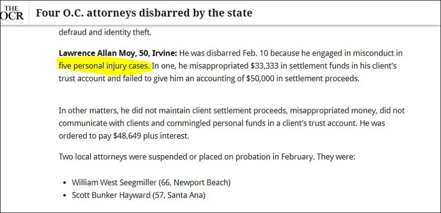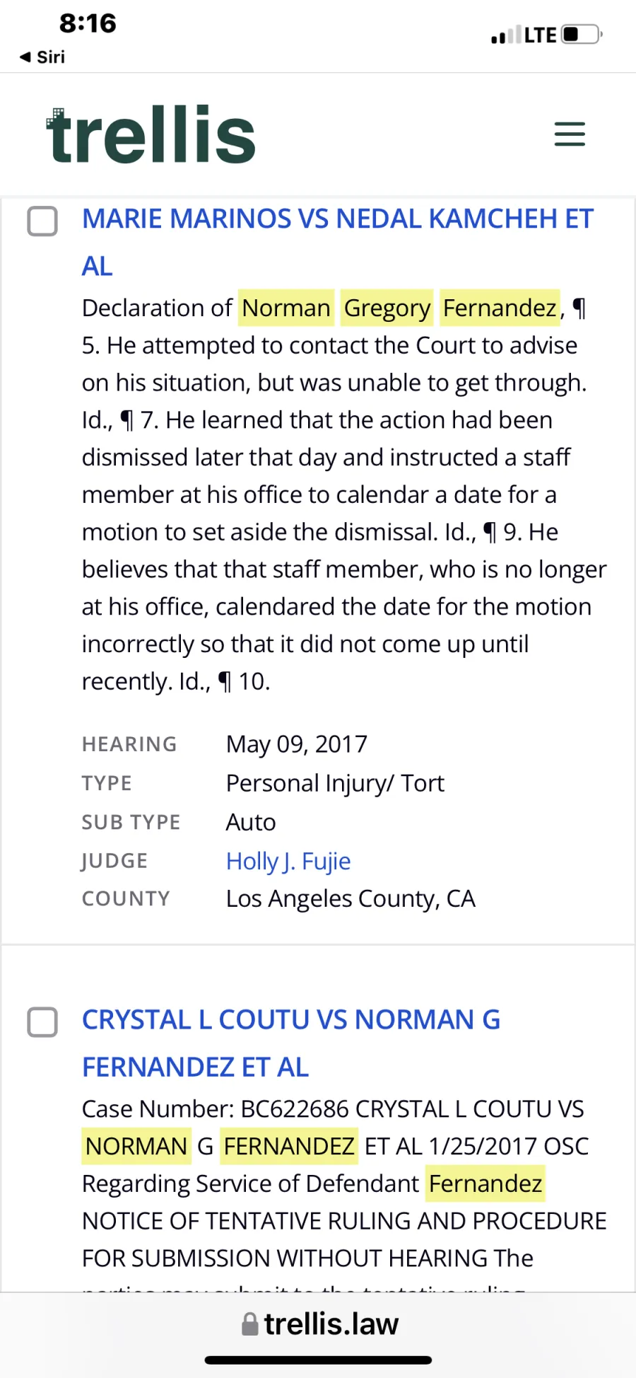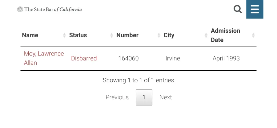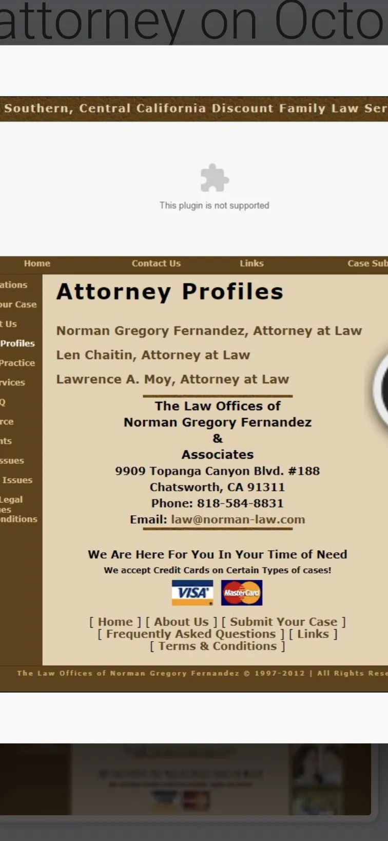 Attached are screenshots I made today October 16, 2019 that clearly states that the Law Offices of Norman Gregory Fernandez included Lawrence A. Moy. Even though your partner had been disbarred by the State of California.
