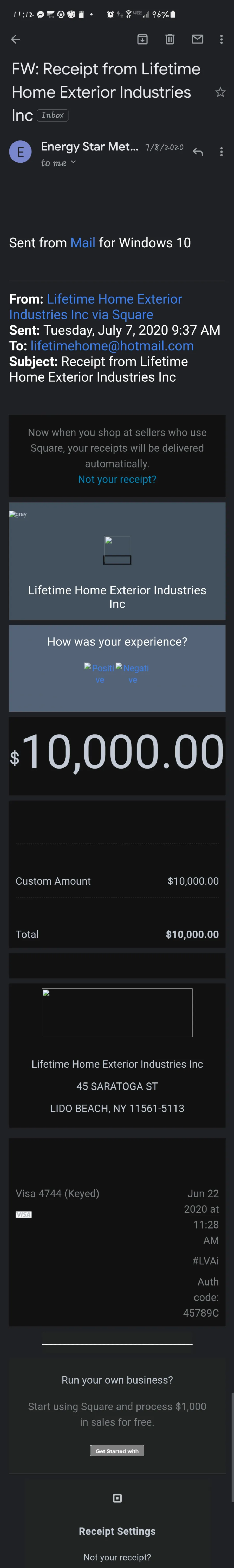 We called the sales rep a couple of days later and he had someone email a receipt which we found out now that it is worthless! (I've attached a copy of 1 of the email receipts. You will notice that it's not on a letter head and the pictures have been removed)