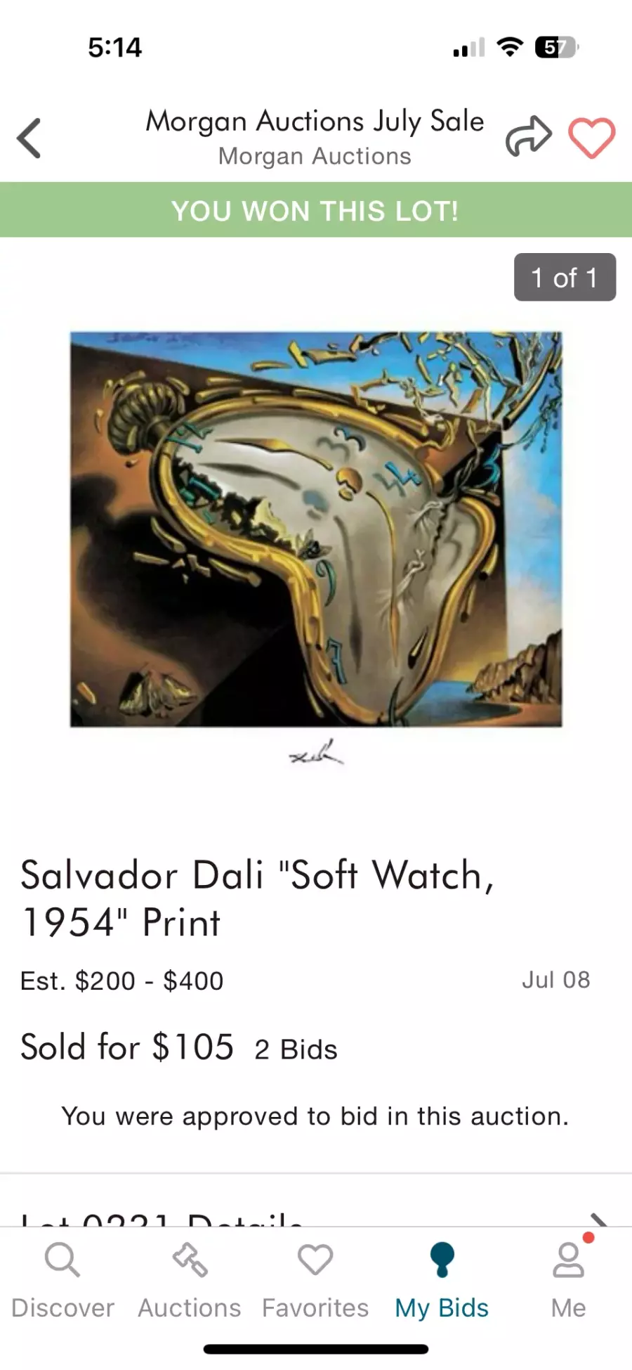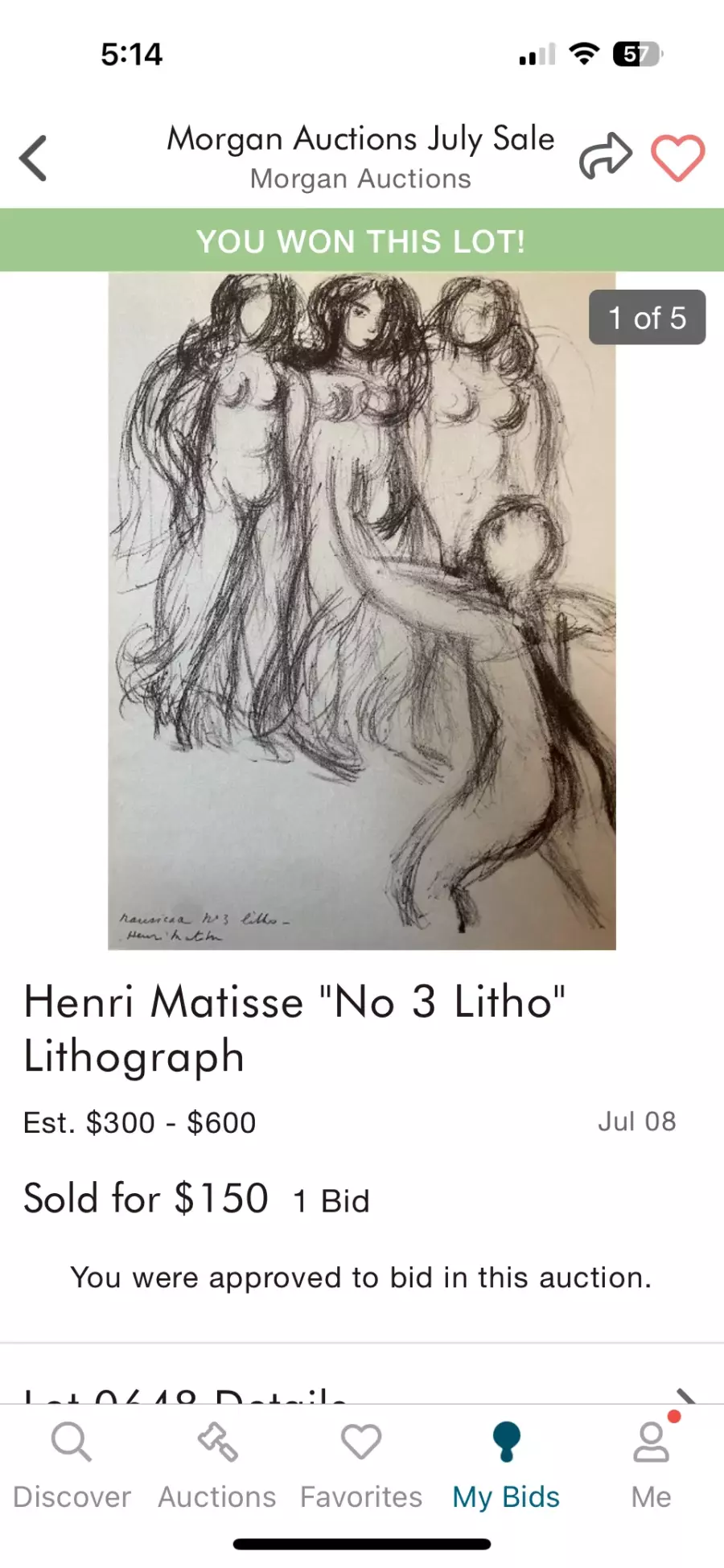 Lithograph was lost by U.SPostal Service MrM*** further stated a refund was not issued immediately since U.SPostal advice MrM*** to allow them time to locate the lost package Once the U.SPostal informed MrM*** the package could not be found a refund of $was processed.We have reviewed their upcoming sales for this lot and does not appearUnfortunately the auction house stated this lot has been lost by U.SPostal and cannot fulfill the transaction The only option we would advise them is to refund the amount which they have done.Although you have stated that you have located the lot at a local art gallery we cannot pursue this any further since it is not listed on our site or in any of their upcoming auctions We have advised the auction house if U.SPostal does find the lot and return to the auction house to contact you immediately.If you would like to escalate or pursue this case any further you need to contact the auction house directly.Miami Auction Gallery*** ** ** ***