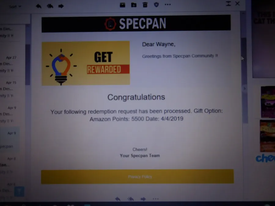 It appears that Market Cube and Specpan are related as when I contact customer service at Specpan I sometimes get responses from Market Cube. I have been waiting for a $55.00 Amazon gift code since April 2019 to no avail. I called the phone number once and the person who answered sounded like they were half asleep, from another country, uninterested in my concerns and barely audible to the point that communication with this person was futile. I have been members with both of these survey groups for years, but it appears they have gone bad. I knew something was up when Specpan switched from Amazon codes to the "drawing entry" scam. I still get invites from both and I still write to customer service and get the "someone will contact you within 24 hours" response, but no one ever contacts me! I have been into these sites for a long time and have made hundreds of dollars so I just feel sorry for the newbies who don't know they have turned scam. My Points is good and honest... so far, and Product Report Card was the last time I redeemed from them which has been a couple of years. I have been looking for ways to contact their sponsors to let them know and the best way is through the advertising industry. Good luck Y'All! NO STARS By the way!