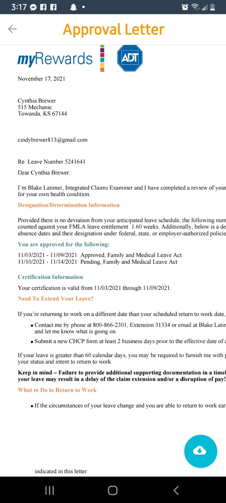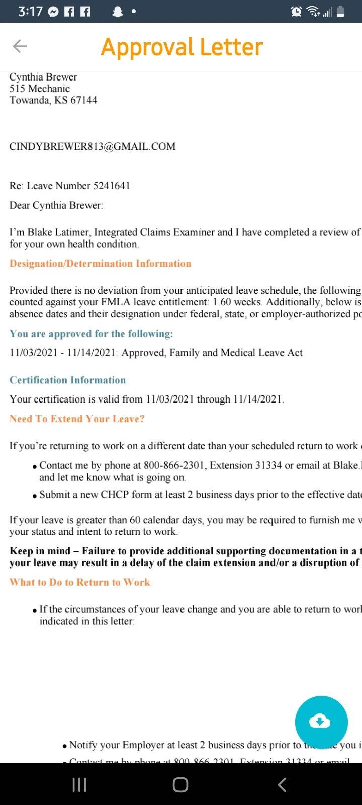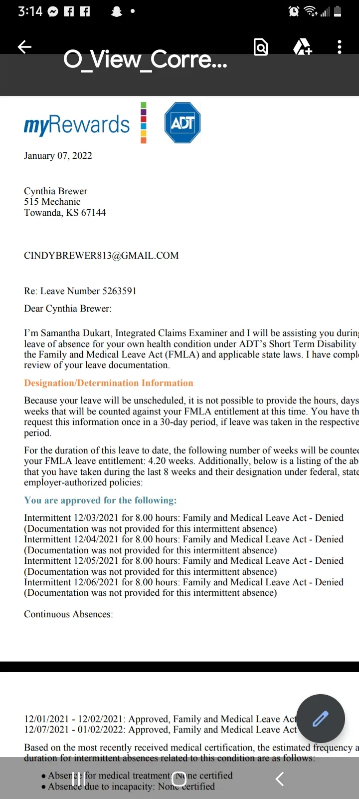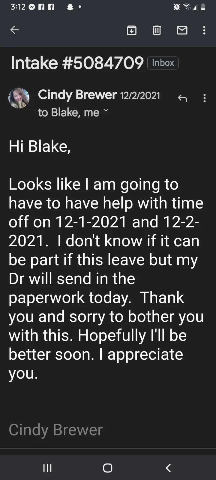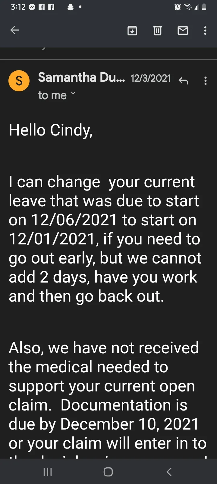 Sincerely, Gail C[redacted], Director of Employment Law & Compliance
