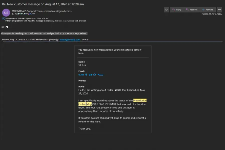 I understand we're in a pandemic and availability might have been affected, but we just touched October and I've yet to receive a single word from them.