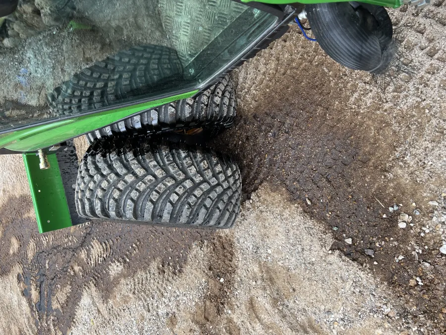The tractor is used very seldom on straight roads very slowly. No sharp turns at high speed, no Rimguard used for Dooley’s.