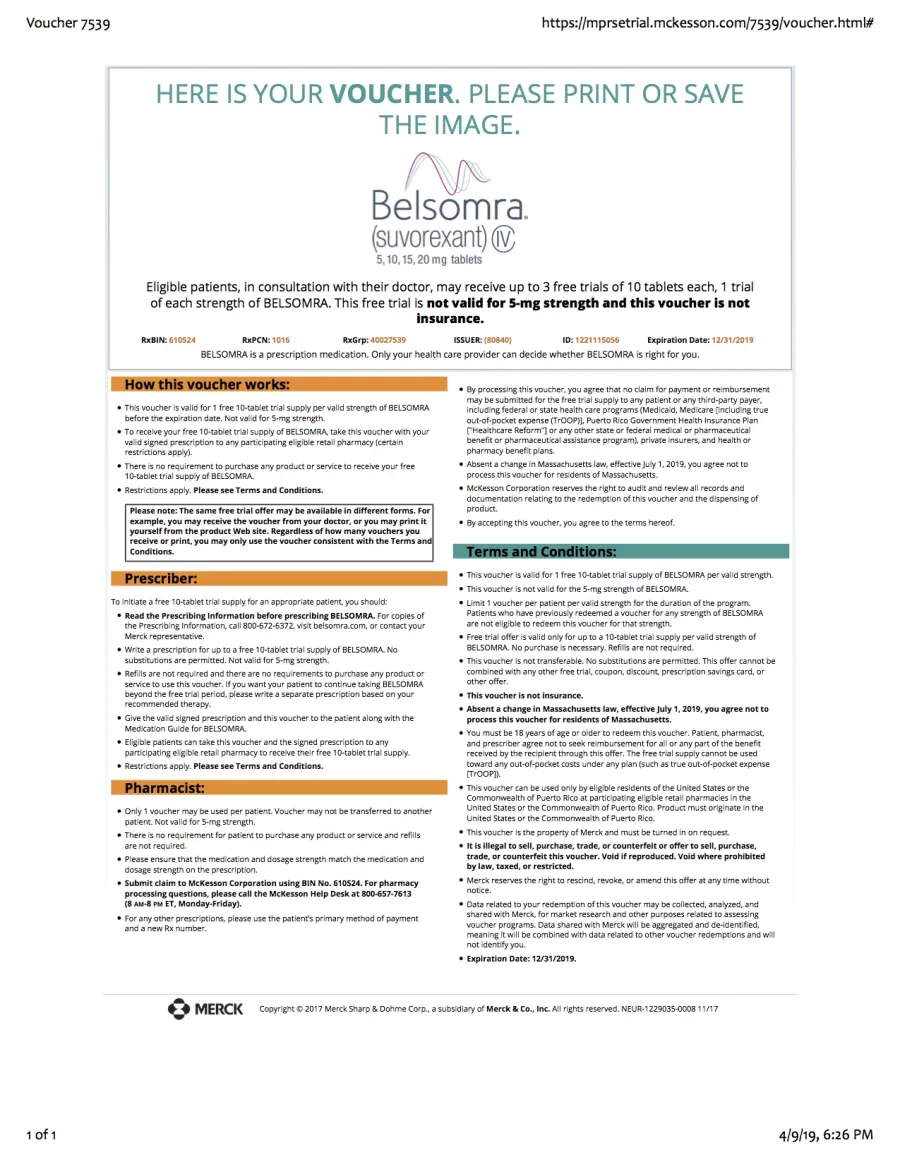 Merck / McKesson for Belsomra trial Reviews (1)