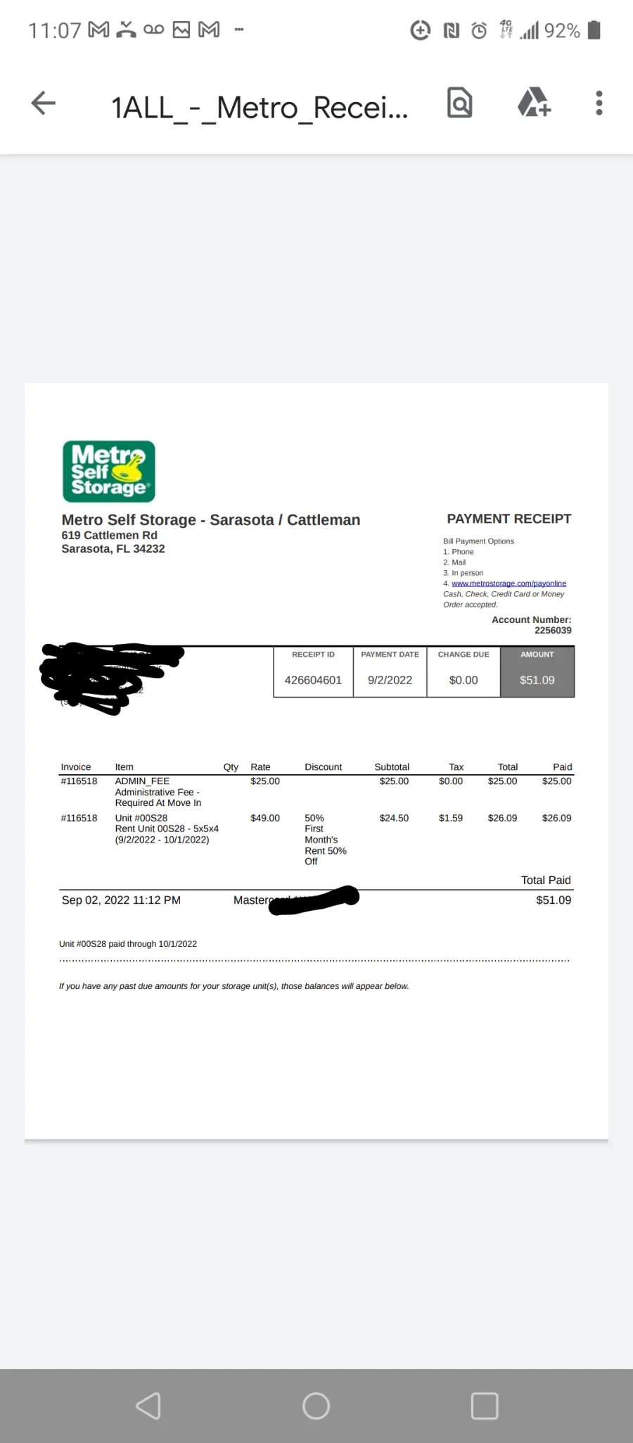 Add contact information for Metro Self Storage