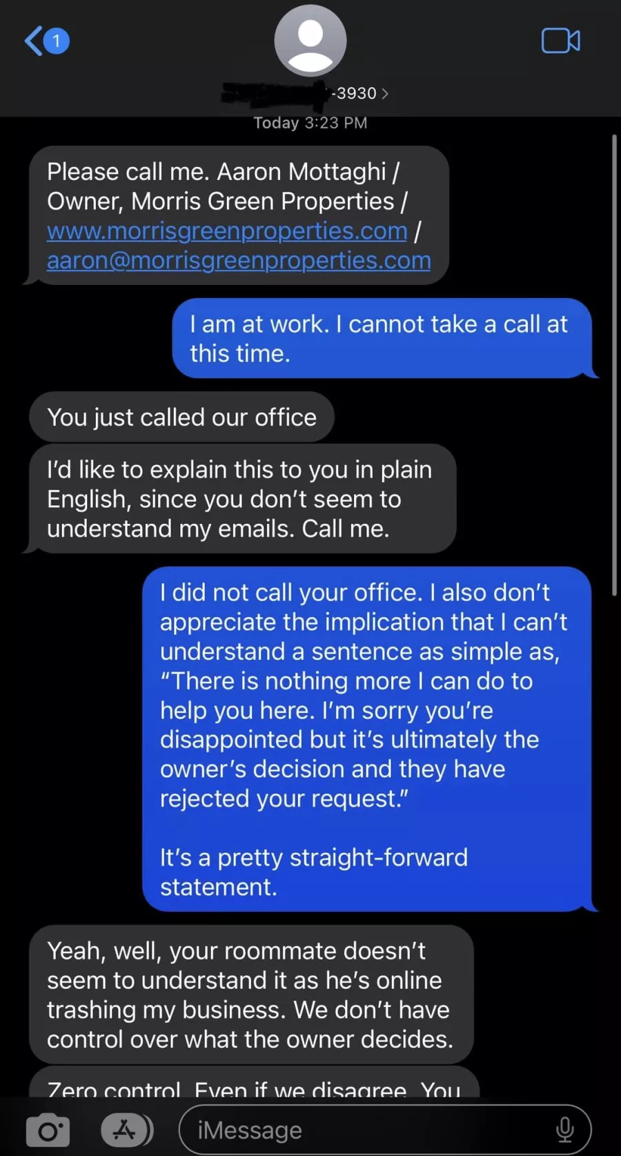 I would like to start this review by saying that Aaron Mottaghi and Cuesta are two of the most dishonest people I have ever met. Do not rent from ANYONE associated with Morris Green Property management. It has become obvious over the past year that they are only looking out for the landlords and treat their tenants like an annoyance.