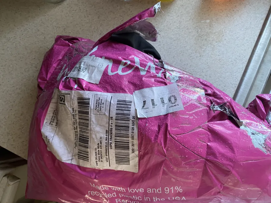 They shipped the clothes shoved into a pink package that was deformed and blamed the post office for it arriving to me this way.