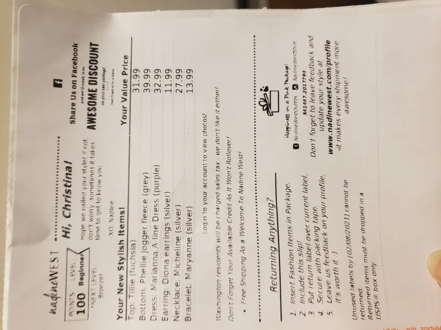 I hate it all the clothes that they sent me the customer service sucks the response sucks I have several times several several times for them to stop sending packages they keep sending me packages they charge me for them I don't want the packages I send them back and then they still charge me and I'm very disappointed in the whole complete service overall experience I would not recommend it to anybody whatsoever