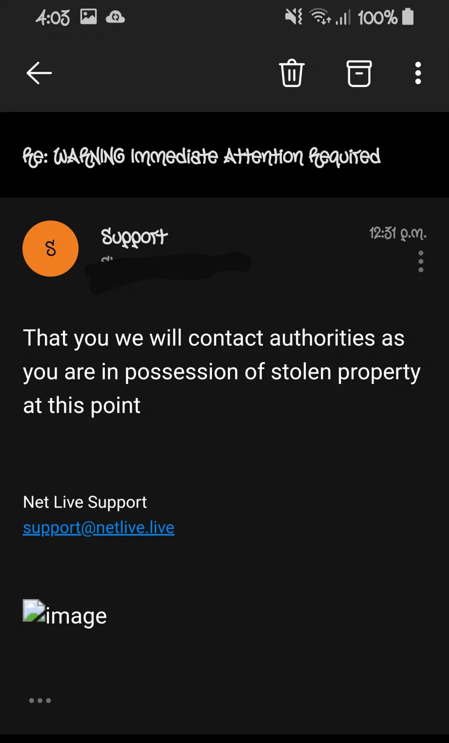 I've also attached a picture of the email I received today them threatening to charge me for possession of stolen property that they never even sent me.