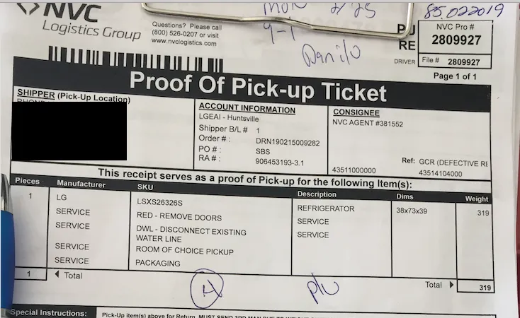 After NordicTrac processed our return, they said that NVC Logistics should be contacting us to process the rest of the claim. We never received a call from NVC Logistics to schedule an equipment pick up, so we pursued them with multiple phone calls and emails.