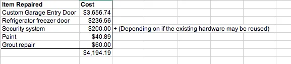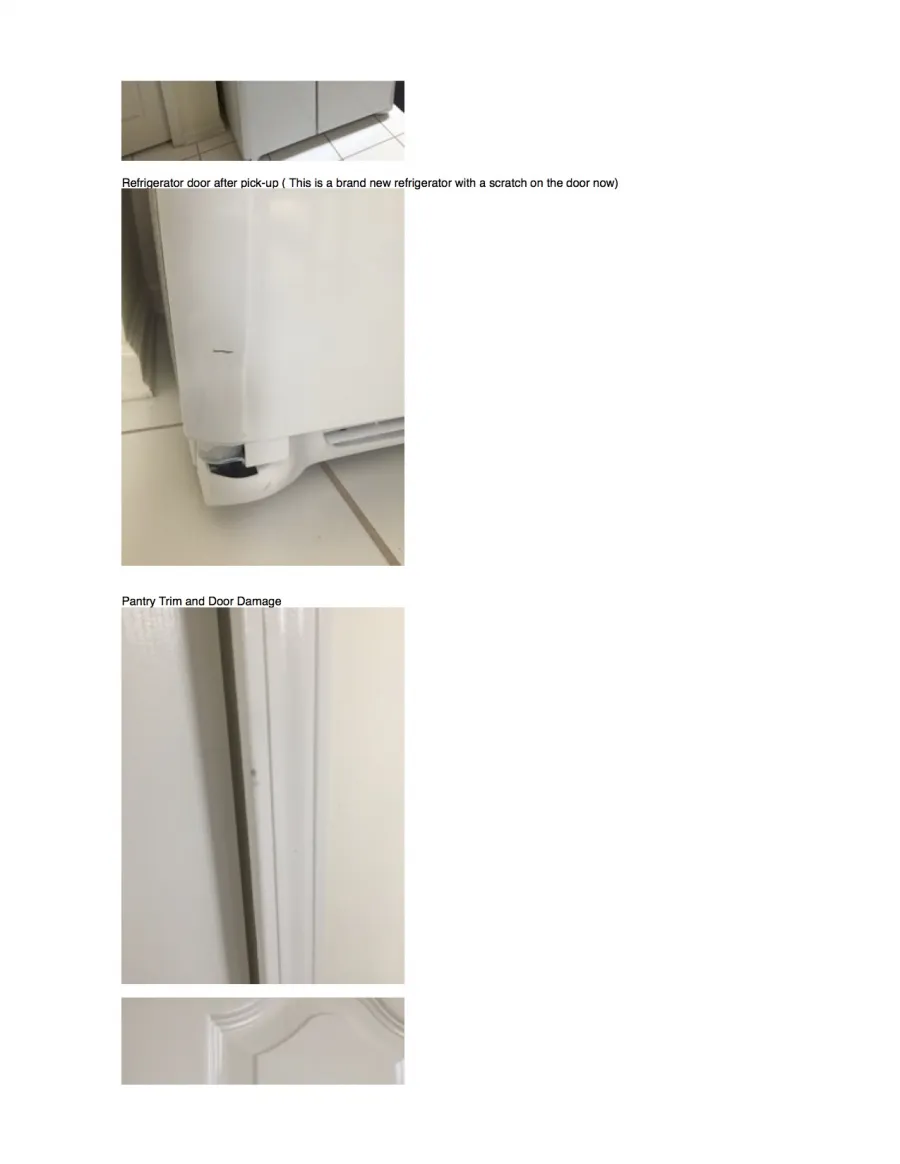I am not sure where the final number came from, because here is the total. All numbers were provided except the grout repair. I have to spend time with building inspectors and contractors to get something repaired that should have never been broken. This was definitely not white glove service more like boxing gloves. I had to spend so much time trying to get quotes and fill out documentation to be told that they said they did not do it, so we are denying your claim. Like I worked hard every day to have a nice home for a company to just destroy it and say it is your problem, because they said they did not do it. They said they did not do it the same day when they found out that the refrigerator door and entry door were damaged. They dragged the refrigerator over the threshold breaking it apart from the one piece frame. There is a chuck missing from the top of the door where they were leaning the refrigerator back on it. I guess there would not be damage on a stainless steel refrigerator when it goes against wood, which one is harder? If there was any paint on the refrigerator they probably wiped it off knowing that they had destroyed our home. I would stay away from the company. They did offer to try to send someone to repair our home, but really we do not need that kind of help ... maybe they would have tore the house down if we let them try to repair something. There is something called excellence and this was not it.