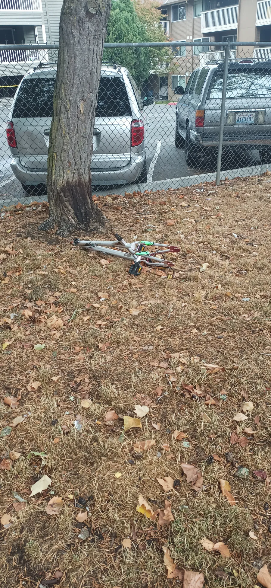 Thanks to this broken fence, we regularly deal with garbage, trash, and feces all over the place. Right now, there is a broken bike frame that started in the parking lot next door last week and has now been in our property for at least three days. Again, this has been an issue since I moved in. At first it was one huge hole, and it has now frown to two major holes in our fence. Good thing we have to pick up key fobs for our gate. I feel protected.