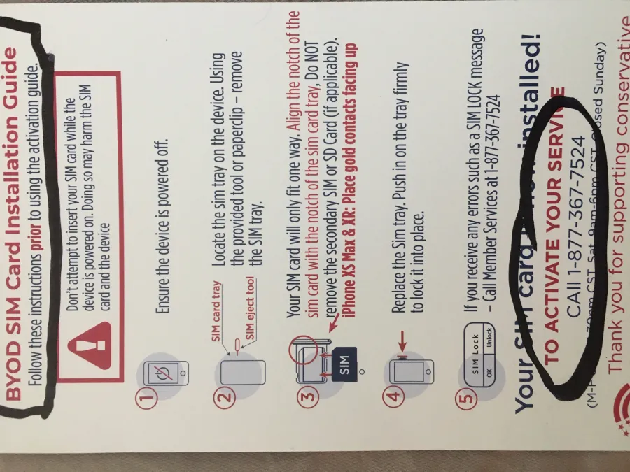 I was absolutely gob smacked! If that was the case, why did the card instruct me to insert the new SIM card and THEN call to activate it? In fact, the “How-To” card is sent to all people who sign up with Patriot Mobile who bring their own device. So, ALL new BYOD customers receive the same instruction card and in all likelihood, I was not the first person to experience this Catch-22 activation issue. So the biggest question becomes: Why have they not rectified the situation? Why are they sending out these cards when it is clear there is a problem with the instructions assuming that the vast majority of customers do not have a second phone or landline?
