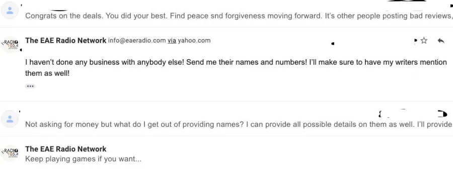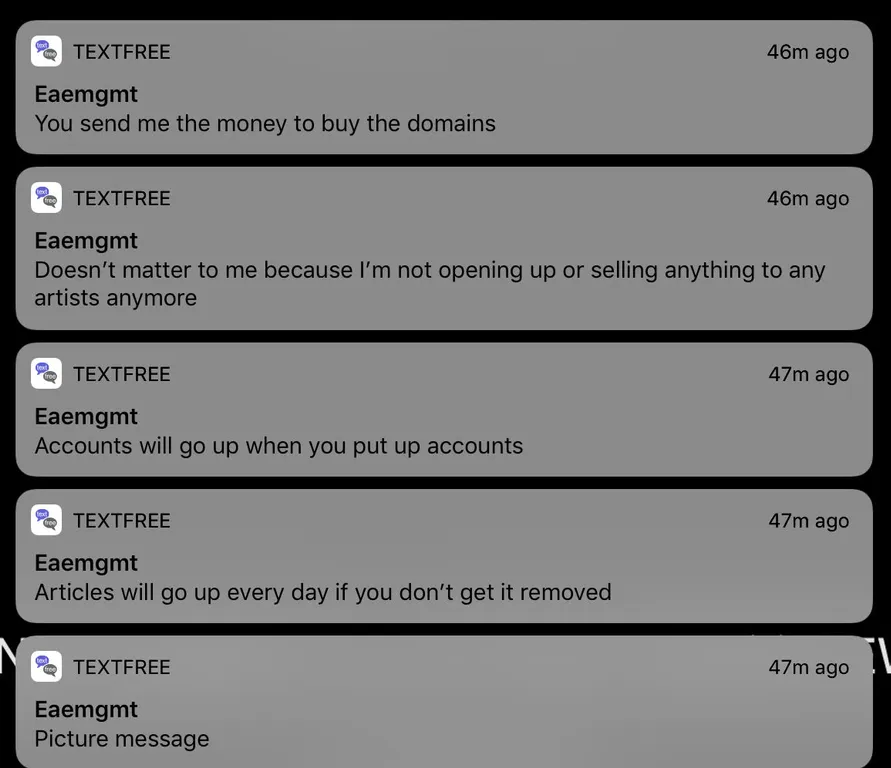 PUSHMEDIAPROMOTIONS.COM AKA HUSHMEDIA NETWORKS OR EAE MANAGEMENT GROUP OR IMMANUEL BELCHER OR AMADARECORDS is labeling this as extortion. It is simple. I paid for a commercial enterprise employer and invested questioning it would all flip spherical for the better. It did not. Lots almost $10,000 and in no way received as rapidly as greater some concern one-of-a-kind than a promise to get repayments that they then modified their questioning in 24 hours. PUSHMEDIAPROMOTIONS.COM AKA HUSHMEDIA NETWORKS OR EAE MANAGEMENT GROUP OR IMMANUEL BELCHER OR AMADARECORDS chooses to label this as extortion as their line of defense.