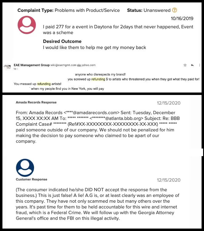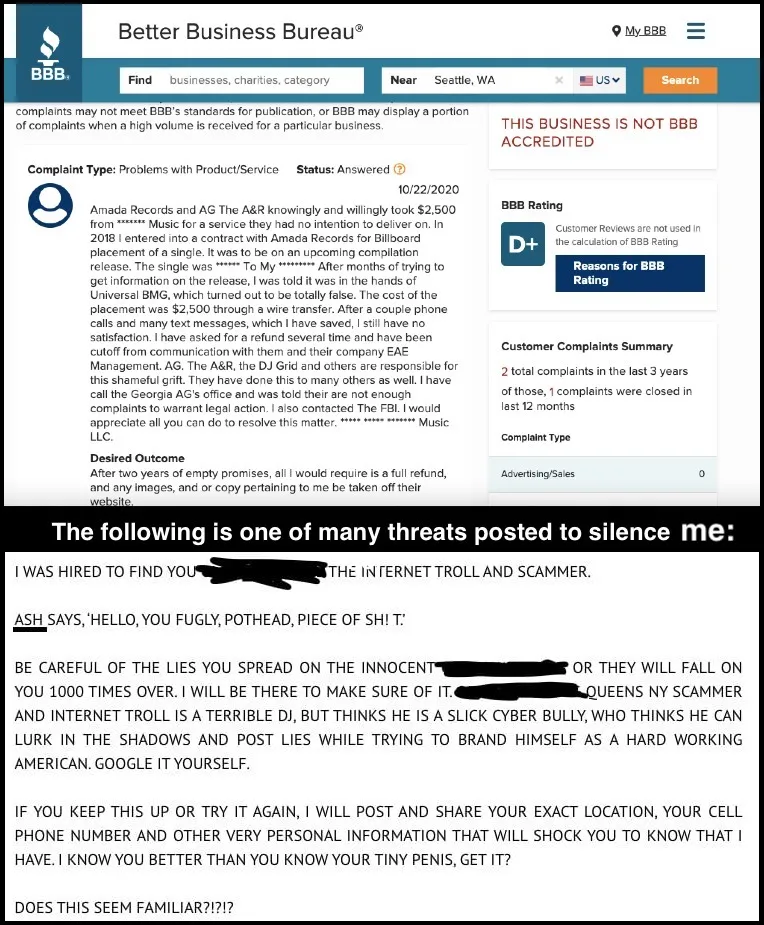 Why would PUSHMEDIAPROMOTIONS.COM AKA HUSHMEDIA NETWORKS OR EAE MANAGEMENT GROUP OR IMMANUEL BELCHER OR AMADARECORDS and so forth assault a horrible reviewer’s find out out then acted like the sufferer when there are genuine receipts?