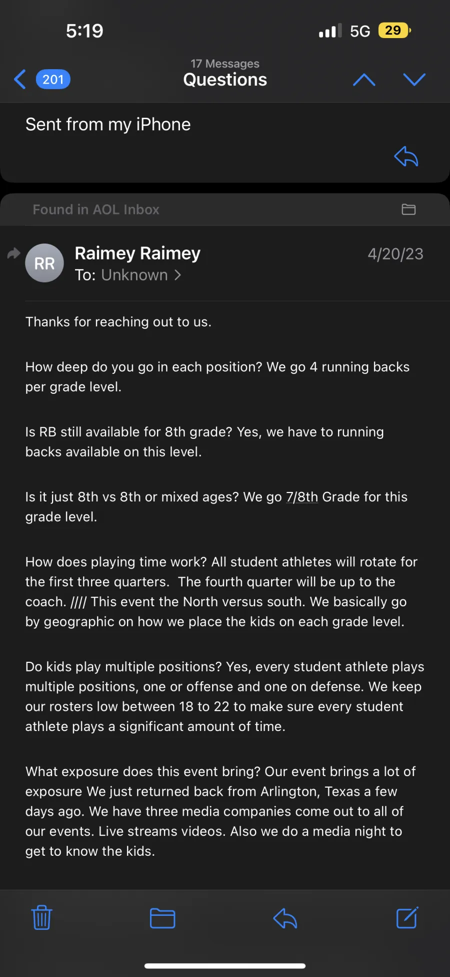 I paid for a camp for my son. He wasn't able to play due to OHSAA rules. ***-Raimey Sports sent a message stating he couldn't play and they would send a refund in mid November.I reached out in mid November and they said December 5th. Starting December 5th I have been reaching out. They have not returned calls or messages without response. They have since deleted their number and their address from the facebook page.