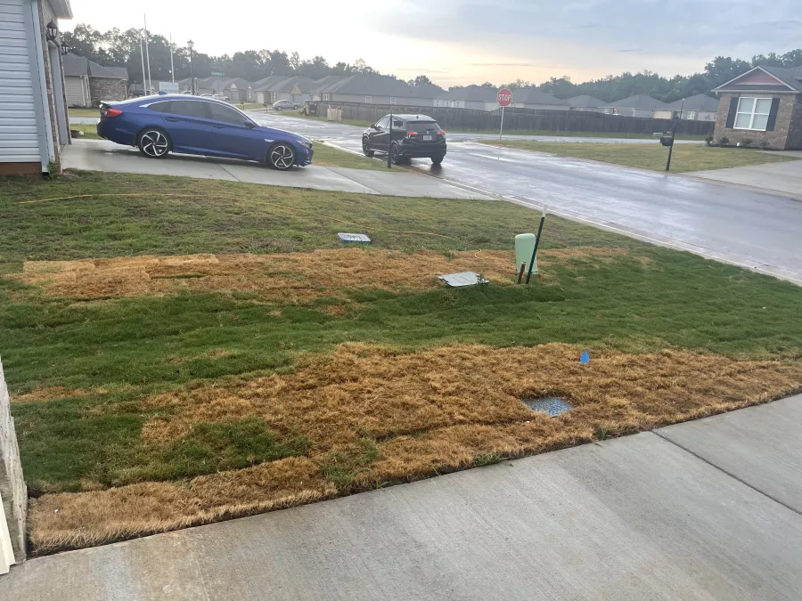 I was initially informed that the yard would be properly graded before laying sod, but my backyard consistently flooded after rainfall, indicating that this promise was not fulfilled. Additionally, a portion of my front yard had sod laid directly over concrete or a large rock, causing the sod to die. I had to undertake the laborious task of removing the concrete and rejuvenating the area myself.