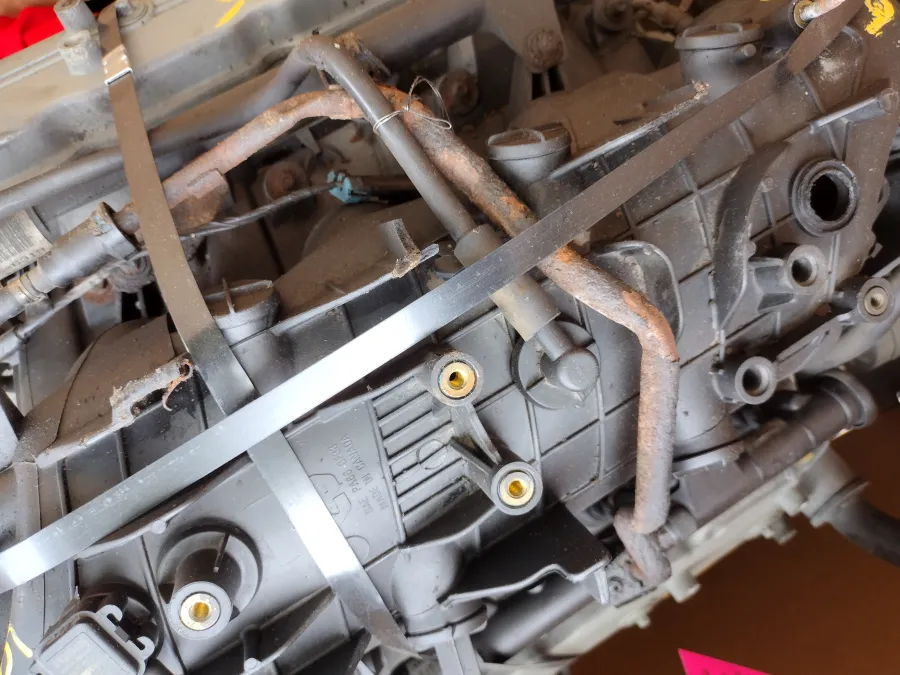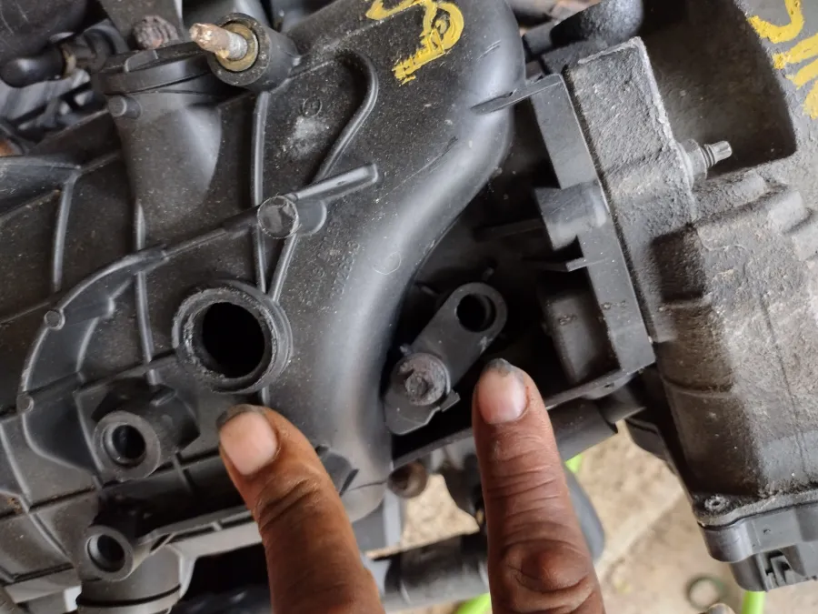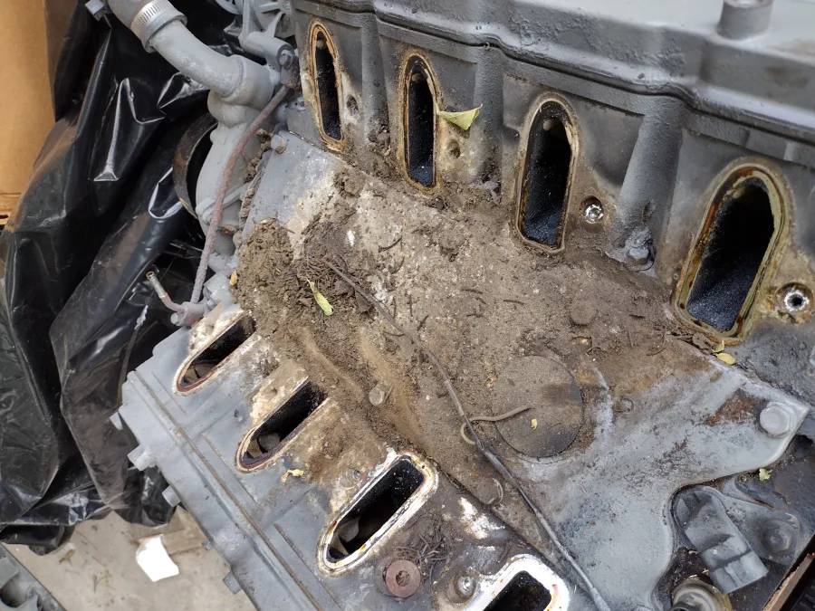 After receiving the engine and paying to have all the broken, missing, and rusted parts replaced, got it all done and installed only to find out the there is a hole in the block where they took of the manifold, one of the bolts were broken off and left in it, another they stripped and bore a hole in it, as you can see in the pictures we cleaned up and changed all the crap they sold me