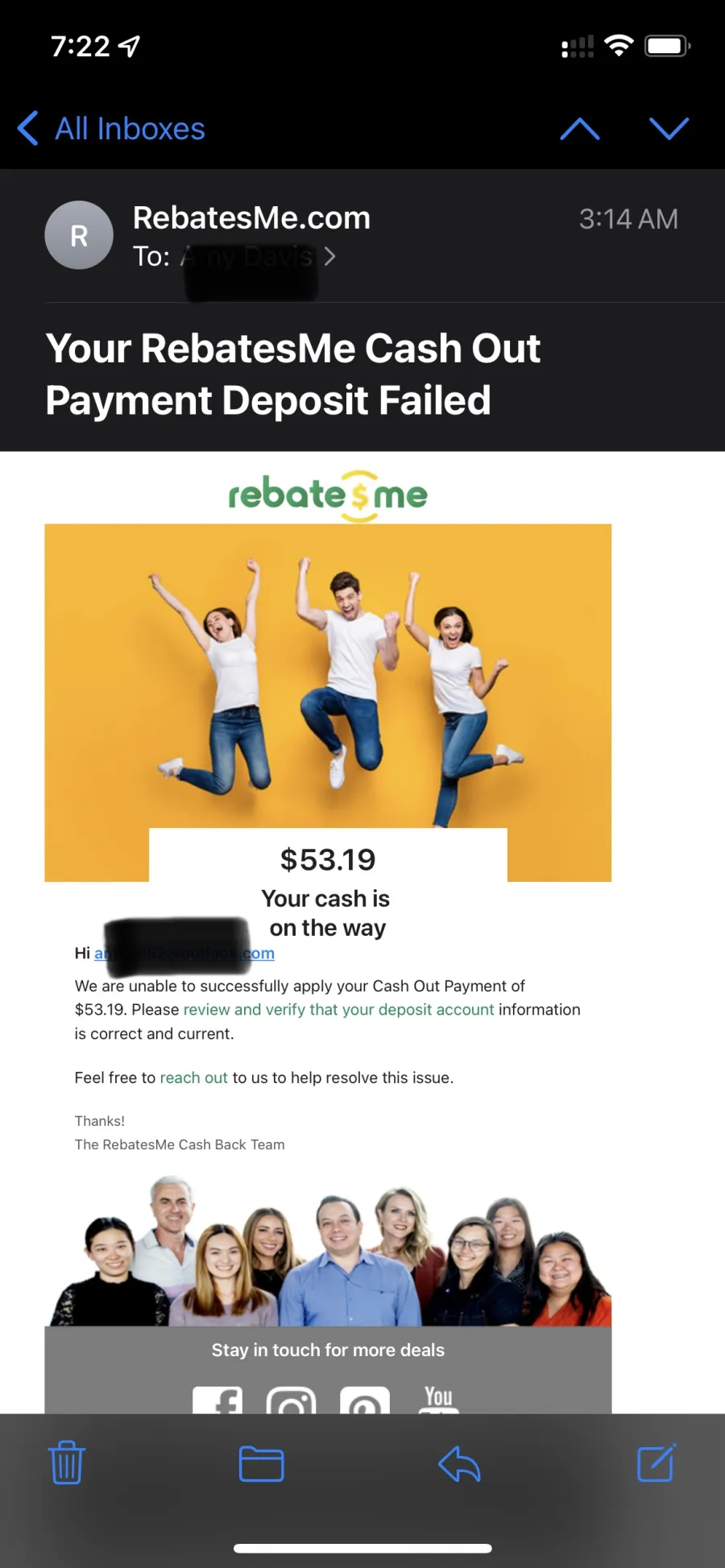 After all my cash back was finally available to cash out, I submitted my request on 8/4/22 via PayPal. On 8/10/22 it was finally approved for payment but minutes later I got another email saying my deposit bounced. What?! No explanation why…I provided the correct PayPal account so why can’t you transfer the money correctly? I made sure my PayPal account is working properly and resubmitted my PayPal request. Now I have to wait multiple days again to see if I’ll get my money?! This makes me not trust the site. I’ll be going back to Rakuten if we can’t get this resolved quickly. I shouldn’t be forced to change my payout method. I want cash not gift cards.