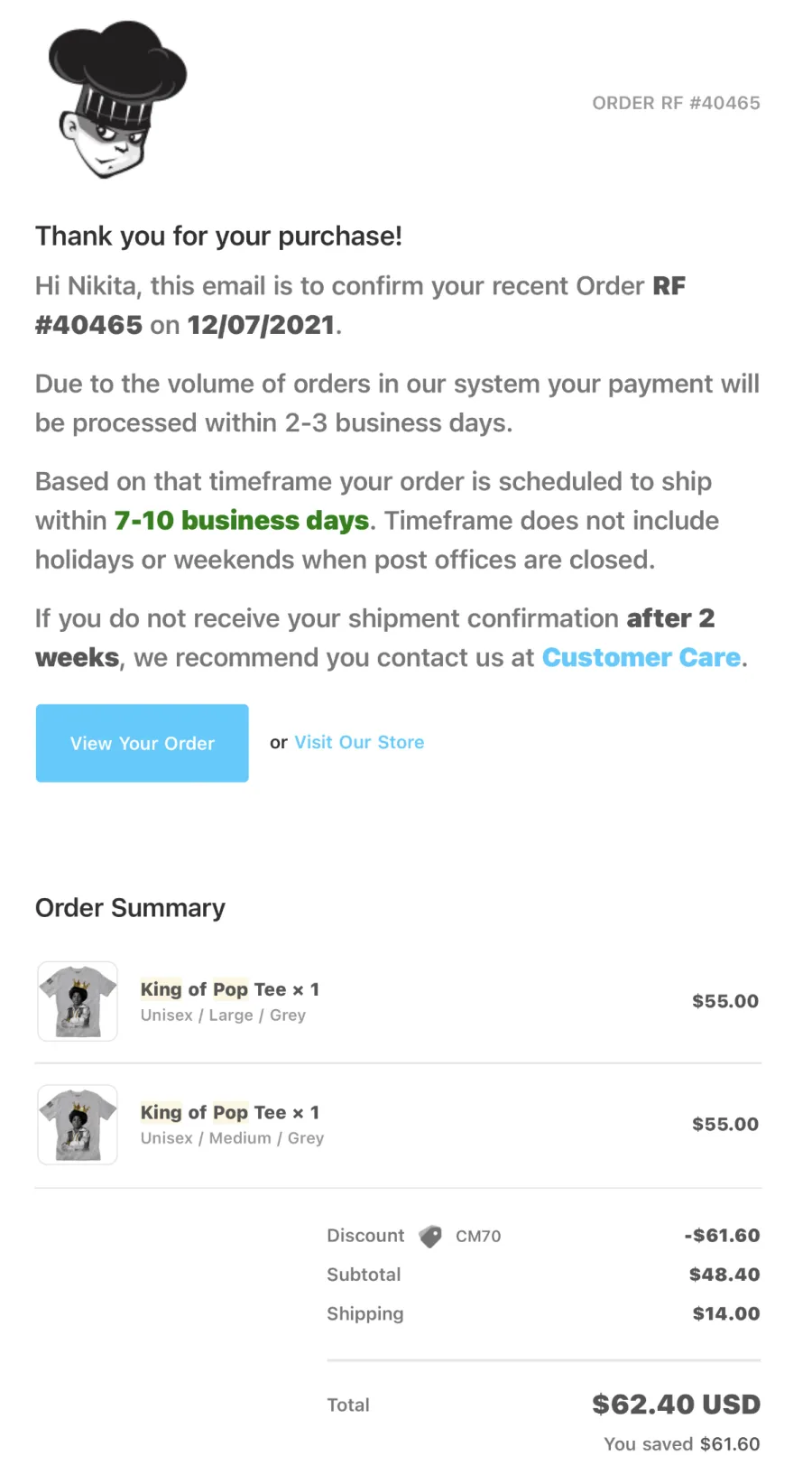 Product_Or_Service: Order confirmation #