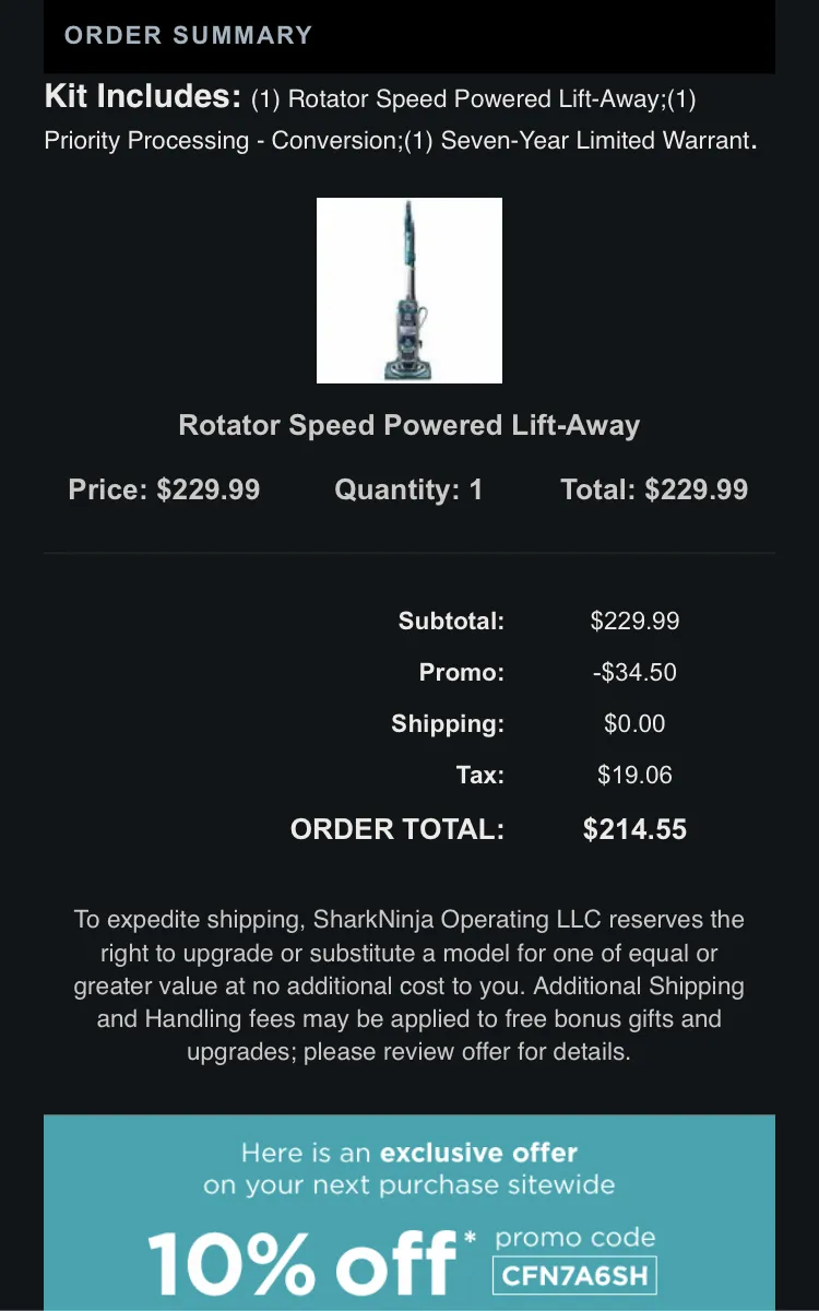 I think this is disgusting and I plan to post it on FaceBook and have contacted the Better Business Bureau about it. I don't care that Shark are having processing problems.