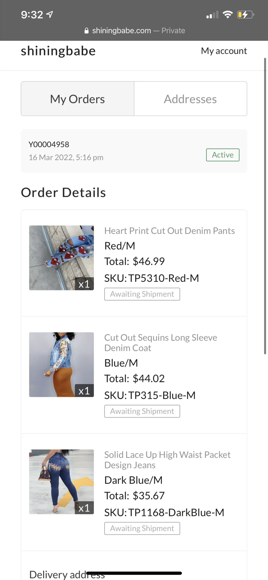My order supposedly been on a boat for more than a month now. Supposedly shipped back on May 10th .. was given a bogus tracking number. A month later still no movement on this package. Just sitting there. So I started a Paypal dispute back on May 18th in hopes of getting a refund because I knew it would take some time. I understand shipping has been slower due to the pandemic but this is ridiculous. But I have been ordering A LOT online and have gotten ALL of my packages delivered in a timely manner. The fact that a package was supposedly shipped a month ago and no movement or activity is still showing for it.. it’s just sitting in that same spot is a problem.. Shining Babe response to this was:
