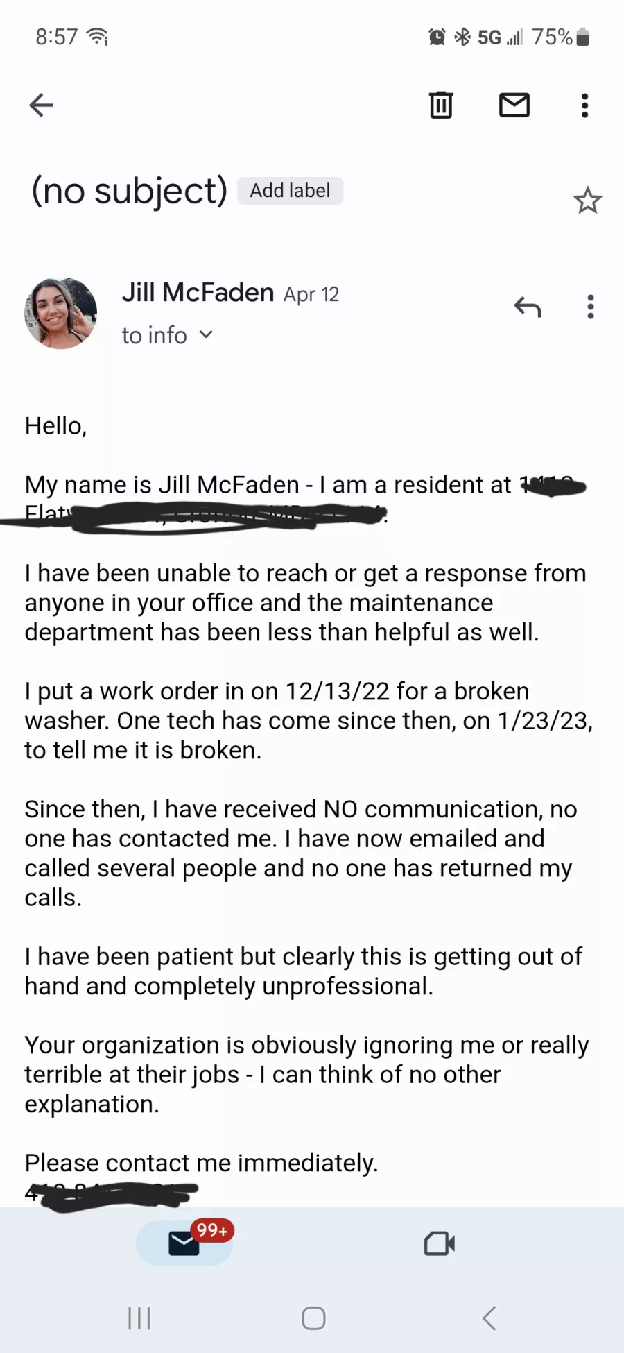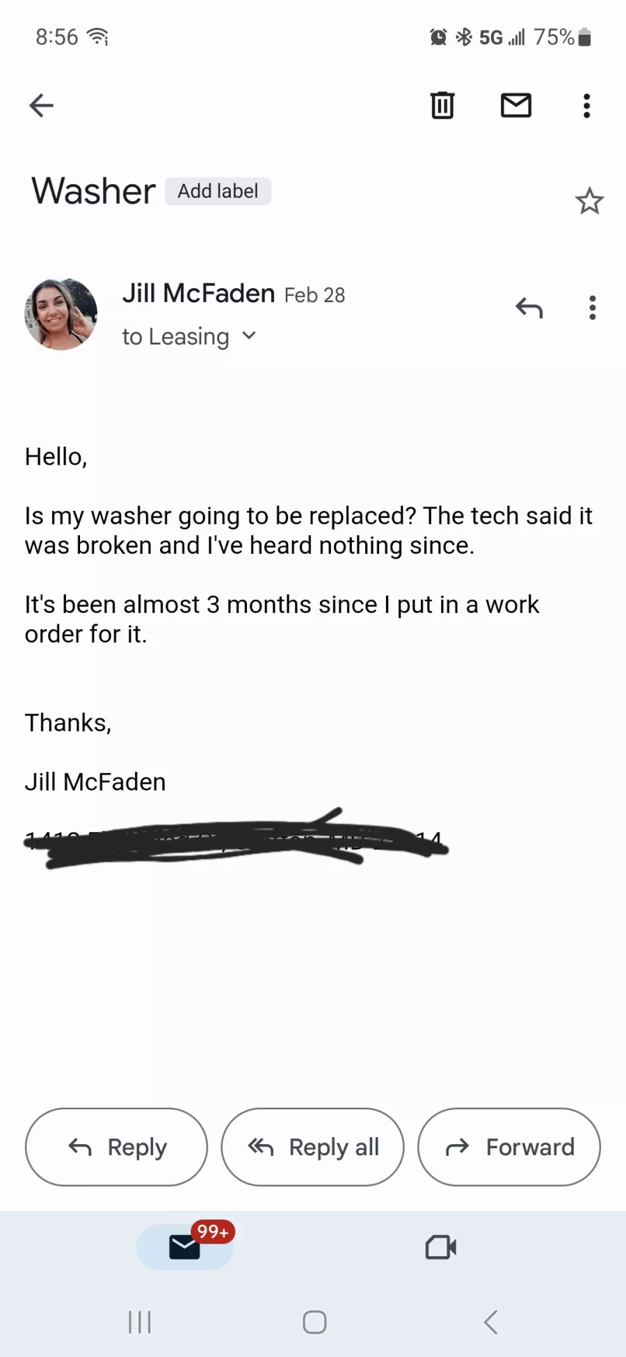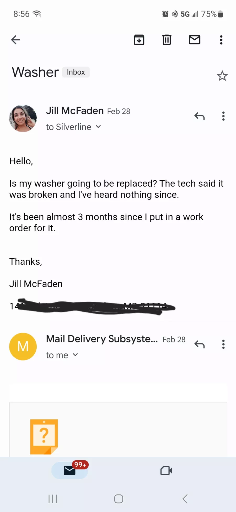 First, it took 6 months for them to fix my broken washing machine. That being said, I called numerous times over this 6 months period of time and I NEVER received one phone call back. Not once. I asked several times for someone to give me a call. 6 whole months, guys. I put in my request in December, it was fixed in June, I believe.