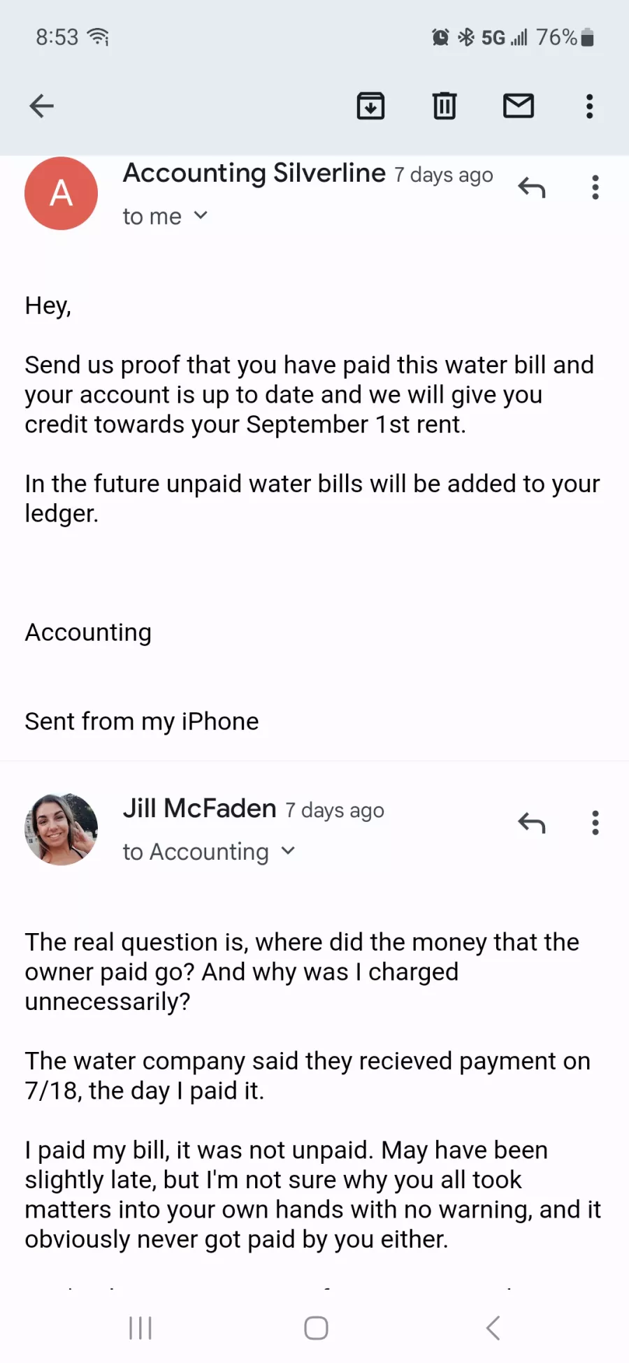 Next, when rent was due one month (8/1/23) I noticed they debited my account and extra $144.50 that they said was because the owner of the property paid my water bill that was slightly late. Mind you, I paid this bill myself (7/18/23) and it was a whole thing with the Silverline Management owner (maybe?) where she was extremely RUDE trying to tell me they didn't debit my account, the bank did. Wild concept to me as the bank would not know what to debit without them telling it what to debit. Am I correct? Eventually I gave them the benefit of the doubt that I would now have a credit on my water bill as it had apparently been paid twice, once by me & once by the owner of the property.