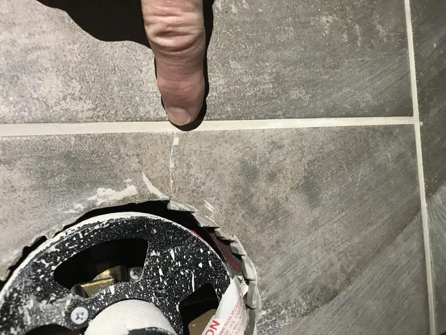 The re-install took place on 3/31, and a couple of days after that my business partner, went out to the home to check on the finished install. He took with him one of our warehouse / customer service employees. They walked the house with the customer, and there was no discussion of damaged tile. They indicated to me they did not notice any damage to the wood base as well. Some scratches on base are very common as carpet does have an abrasive backing.