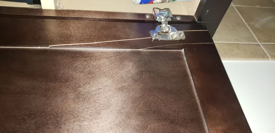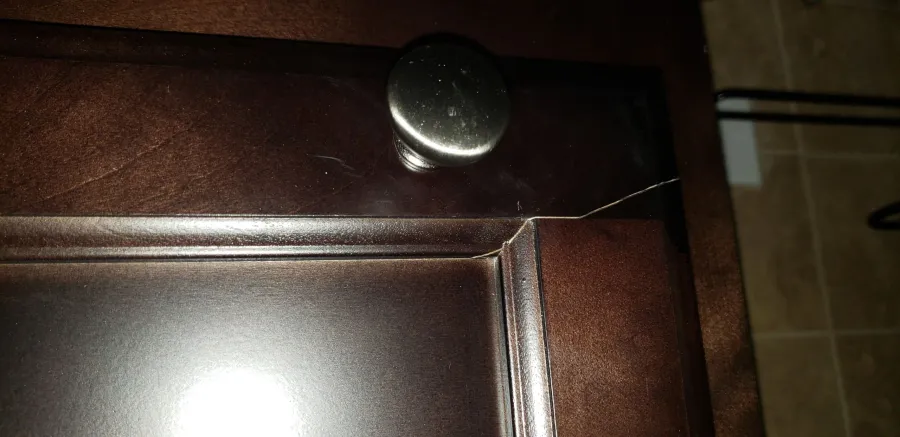 1. Turning the walk thru, I noted that two of my kitchen cabinets were cracked and the the Kitchen window bottom right side have a down pitch of 3degs. The trio kitchen cabinets were replaced, . But nothing was done about the window.
