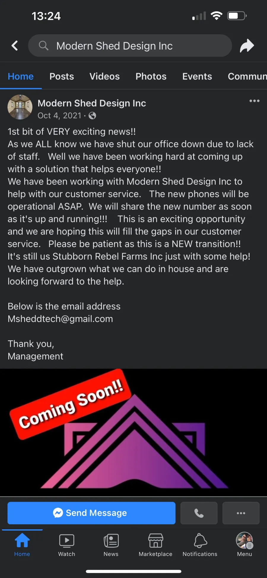 If you want to make some sort of assumption at how I conduct my business, instead of apologizing for the horrible customer service... alright. I recommend you check out our reviews, as we have pretty satisfied customers across the board. We have maintained nearly a 5 star review (4.7-4.9) for all of the years since I've owned it. I'm assuming that you disabled your review capability on facebook for a reason. Judging someone's business based on their frustrated response to an absence of customer service for a $15,000 structure doesn't quite translate. That's not chump change. Just saying.