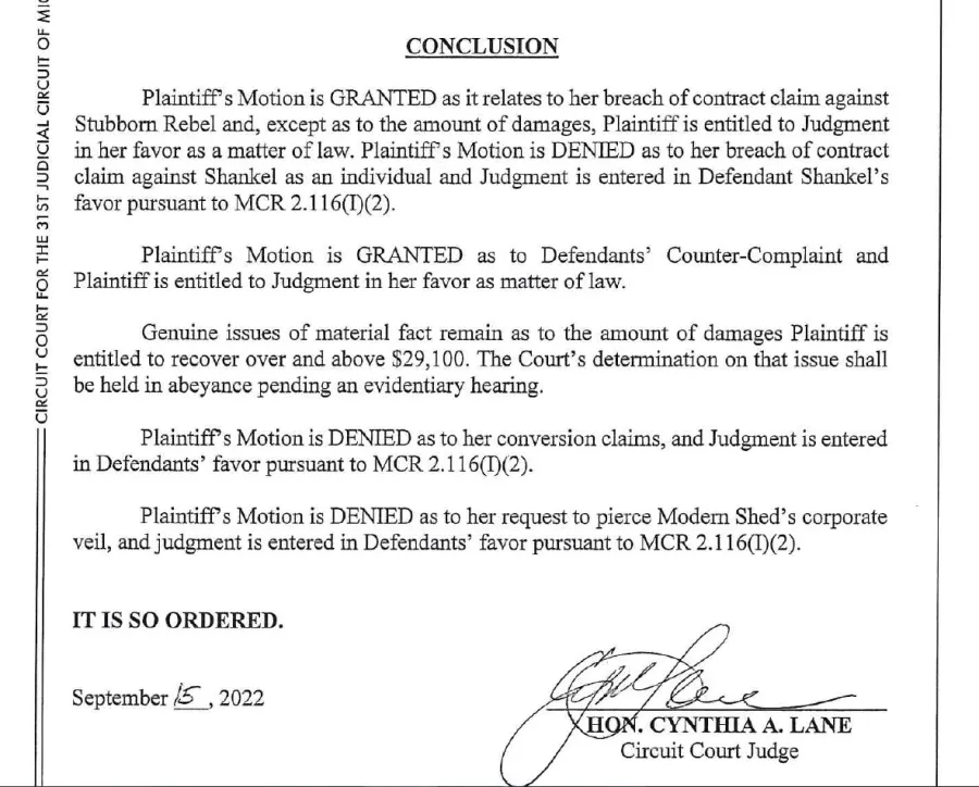This customer changed her order multiple time over the course of nearly a years time. Due to these changes and the nature of the delivery we were forced to give her a COMPLETE refund of her deposit on this order. This order was not able to be completed due to DOT laws and regulations. Stubborn Rebel Farms strictly follows our legal permits to haul portable buildings to customers. This customers building DID NOT fit these guide lines. So we refunded her deposit in full .