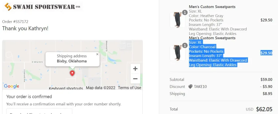 Ordered two more pair Jan 12, 2022 for $62.05. Called Customer Service last week & got a voice mail & couldn't leave message. It's now March 7, 2022 & still no merch. Filed complaint with BBB very similar to quite a few others. Bet I never get my sweats or my money back.