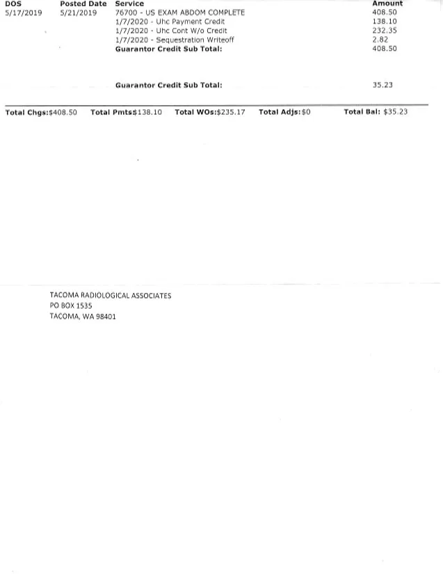 I contacted the creditor directlyTacoma Radiology says that they sent billings to us in October, November, and December I did receive one billing around that time, and promptly paid it on 12/5/Tacoma Radiology said that they applied this to a previous balance we owed??? I am unclear as to why the billing they sent out in November did not show all monies we might owe themI paid the balance of what they say we owe in an effort to maintain our credit ratingSo the matter is resolved, however I seriously question the billing practices of this organization