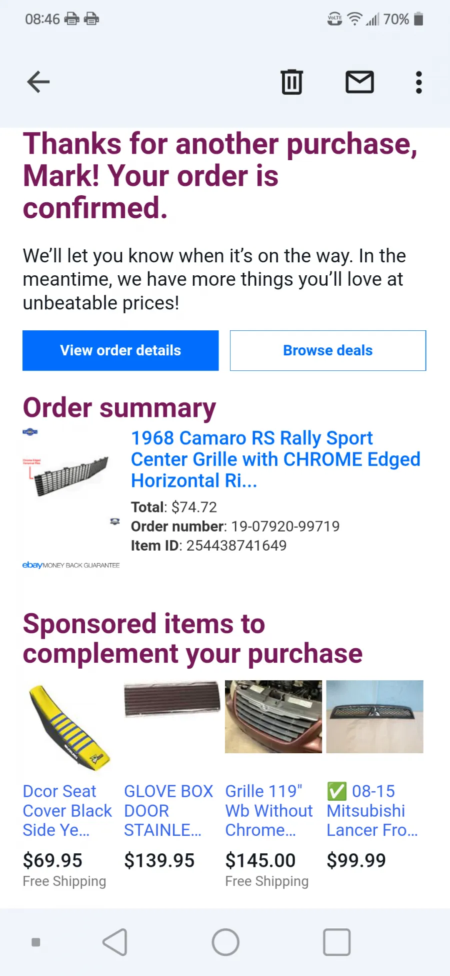 I ordered a grill for my 68 RS Camaro November 24th- 5th of 2021 I was sent an email from eBay saying that they would notify me when it was being shipped after waiting several weeks I never got a response so I contacted tamraz to find out where my order was I was told that the order number could not be found later in the day I got another email saying that the order number was found in the apologize for the misunderstanding the problem is by that time I had to have the grill I ordered it from someone else so I immediately responded with with an email canceling that order asking for a full refund because they obviously had not shipped my item yet then I was told that the item was out of stock and that they would ship it as soon as it came in stock I again requested a full refund and a cancellation of that order. crickets no response no contact I have emailed Mike and John several times requesting if all cancellation in a refund to no avail this company's a bunch of scammers I've called the company and the department and department to get a cancellation voicemail are full on both of them so you can't even leave a voicemail this is BS