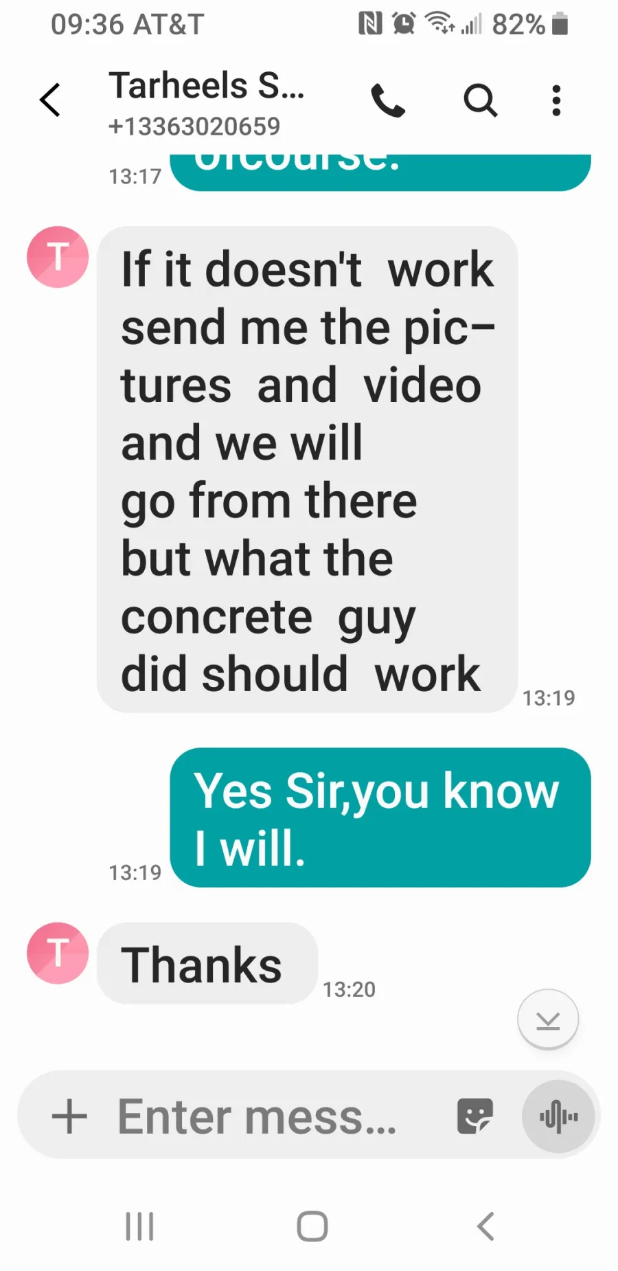 WE HAVE A CONCRETE SUB CONTRACTOR GOING BY THERE TODAY 8/31/TO GET THE CONCRETE REPAIRED