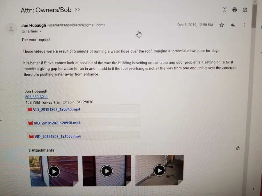 Ummmm, No one has made contact since Dec timeframe as I have called and emailed Tarheels Metal Structures. This site is not practical due to they can put in their remarks that they have made contact when in fact they have not .How useful is complaining and getting resolve when its the Company playing games as they have for last year? The option was simple to take care of the problem when Bob has made no effort to respond to my paid solution and all I m looking to be refunded the cost then I will walk away.