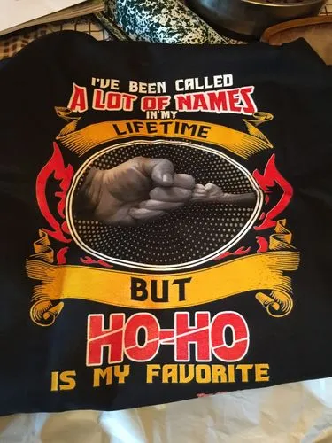 When my granddaughter Violet was born my daughter asked me what I wanted to be called, grandpa, papa, ect, I said let’s wait till she starts talking and see what she calls me, I spent the first 2 Christmas’s with her and she started calling me Ho-Ho after Santa and, she even asked me if I was Santa, I just smiled and winked at her. She makes me melt every time she calls me Ho-Ho so this shirt is perfect.