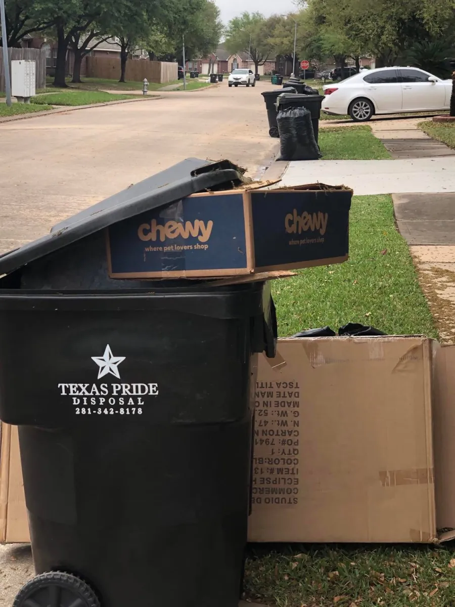 Same here in Magnolia Texas. Neighborhood has trash cans lined up with smelly disgusting waste over flowing.