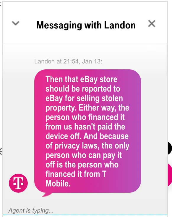 I bought a preowned iPhone from their eBay store in 2018 the phone worked fine until recently I decided to change carrier. The phone I bought is unlocked but it is on T-mobile’s block list. I’ve never used T-mobile before. T-mobile told me this was a stolen iPhone or the bill of the previous owner never paid off!