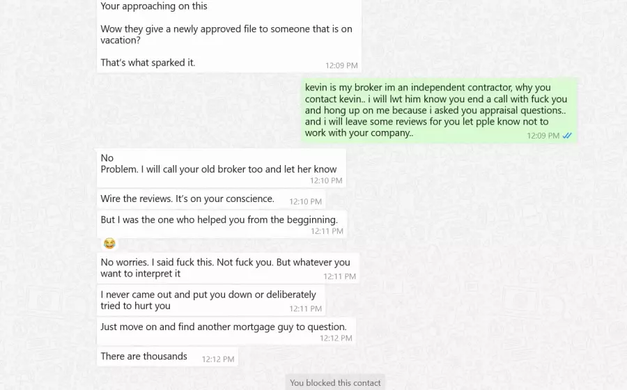 this guy belongs in the Loonie ban, referred him my client, because I call to asked questions regarding the appraisal and the rate he flew off the deep and with nasty profanity following by him hanging up on and right away sent an email with all including the seller and his attorney letting them know he is no longer doing the deal, while no word to the actual client whom he pulled credit collect all documents, loan almost costing the client her downpayment, while putting the clients business out with no regards to privacy. and from there he continues with being nasty yelling cussing nast words while I try to get him to reconsider, he refuses, I tried working with the bank rep at first, she was willing to sure how he threat her she too stops taking my calls, I tried call from different number she picked up as soon as I identify myself she Hong up. what kind of company is that? they rate they have sold my customer was 9.99 while she has 800 fico. we ended up closing some deal with a rate of 5.99 interest rate. people please do not go to this investor /broker or that crazy guy Daran kaplan and he is supposably a branch manager not sure how is [email protected] he calls himself the mortgage guru on you tube don't buy it all he does is upsell points etc. to better he's bottom line and if you question him, he blows off and threat to drop you or he just drop you. everyone is just a number or dollar sign to him, no caring he is greedy and nasty. the rep said he was a riot a bum waiting to explode. DONT DO BUSINESS WITH TOTAL MORTGAGE DAREN KAPLAN. see attachments.