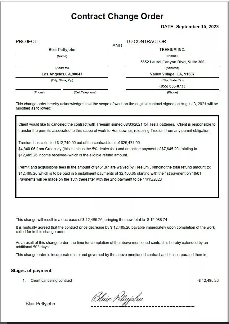 I Signed a contract on to install (2) Tesla Powerwall units. Paid a total of $9,767.20 prior to receiving product and installation.