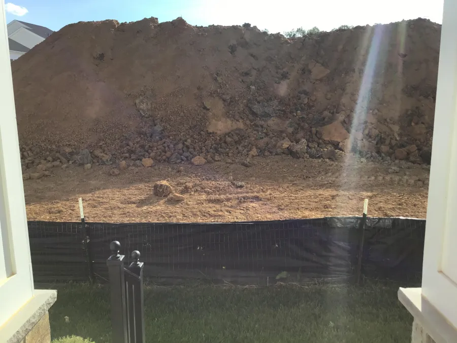 Have dealt with site problems entire time. One of your first homes here, but open field in front of home is last to be built leaving me with a silt fence, bugs, dust (I am allergic to dust) and now a huge mountain of dirt. Was told it would be moved when new foundations at end of street were in. Well, they are in and while dirt was moved, not in front of our home. The siding is now filthy, I am coughing, and I want to know when this dirt mound will be moved. It blocks my only windows. No more excuses and hope you offer to power wash myhome front and windows.