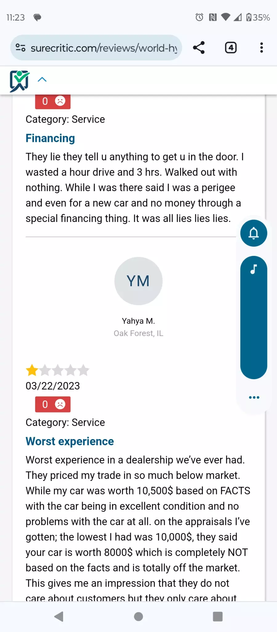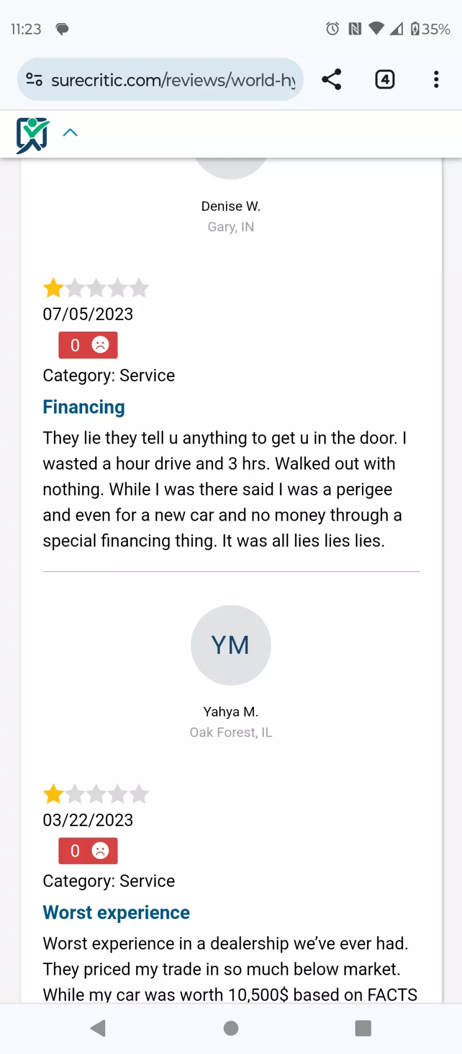 I purchased a new Hyundai Sonata from World Hyundai in July of I was sold this car partly because the salesman promised free oil changes for life I took my car in every month for this free service for years When I took my car in for the October oil change, all of a sudden they have nothing in there records to show this promise Their manager says there is nothing they can do to honor this agreement I thought others shoul know this is not an organization to trust or do business with