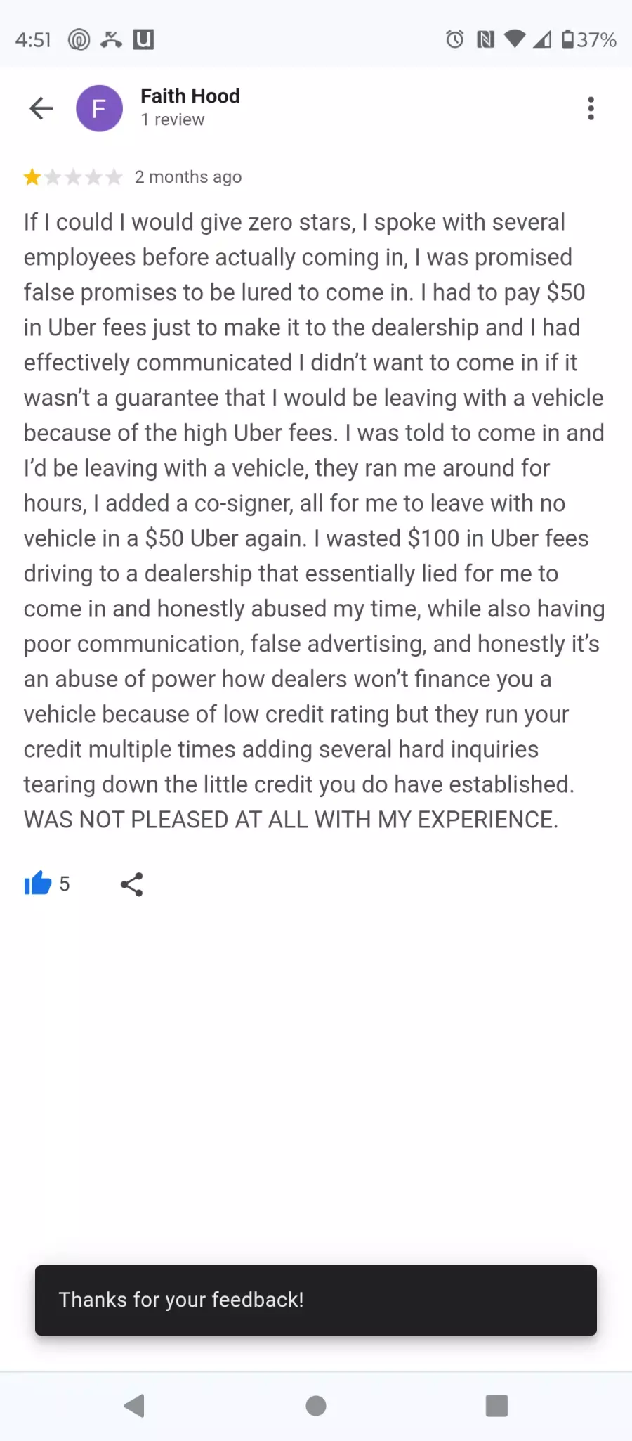 Ebony [redacted] was great! I would refer her to my friends and familyI did not feel pressured at all and she really worked with the budget that we came in withIt's nice to know that there are still people who are kind and considerate of what you want in a car