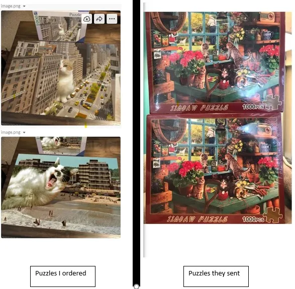 Bought 2 puzzles from Shenzhen Lijuan Trading Co., Ltd. Finally arrived, products not even close to what I ordered. I made a complaint to PayPal about it - weeks went by, finally heard that "the company agreed to refund $30". I paid $59.04. However, I could get a full refund if I shipped the garbage products back TO CHINA on MY OWN DIME. I continue to fight this with PayPal, who is not helpful in the least. I did more research and found on the PayPal community forum, there are literally DOZENs and DOZENs of people complaining about this fake company, the complaints go back for MONTHS. So PayPal knows this company is not legit. The return address on the garbage products I received is from YDH INT'L INC in Valparaiso IN - A US address! I looked that up, and BBB gives it an F, stating consumers reported not getting products they ordered. Paypal is siding with, and continues to partner with, a fake fraudulent company!